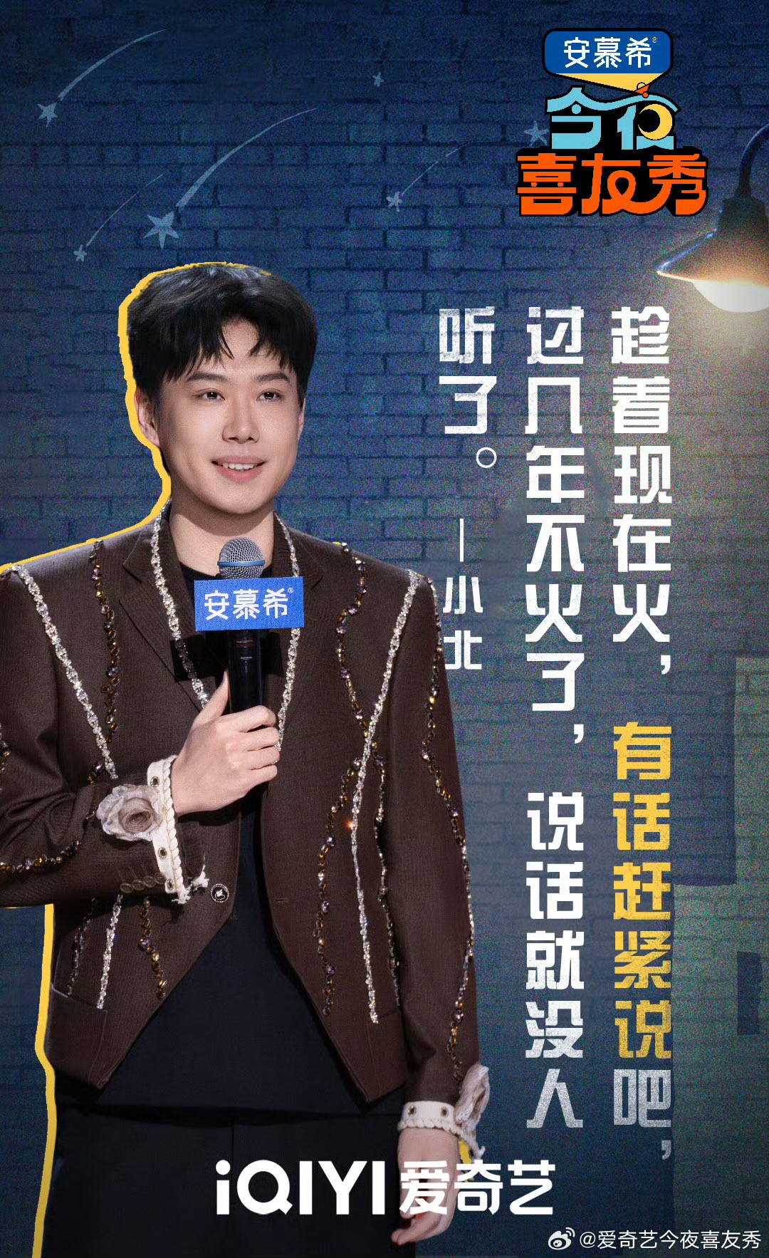 “参加这档节目,跟脱口秀不一样。《今夜喜友秀》的喜剧形式更增加了丰富性,这也是导演组特别大胆的一个尝试。”采访伊始,谈起此次出演与以往的不同感受,小北的回答直白又简单。他提起了此前参演的《喜剧之王单口季》,《今夜喜友秀》可以视作爱奇艺“喜单”IP的延续,尝试由单口喜剧延伸出多种喜剧形式的一个新的节目。
